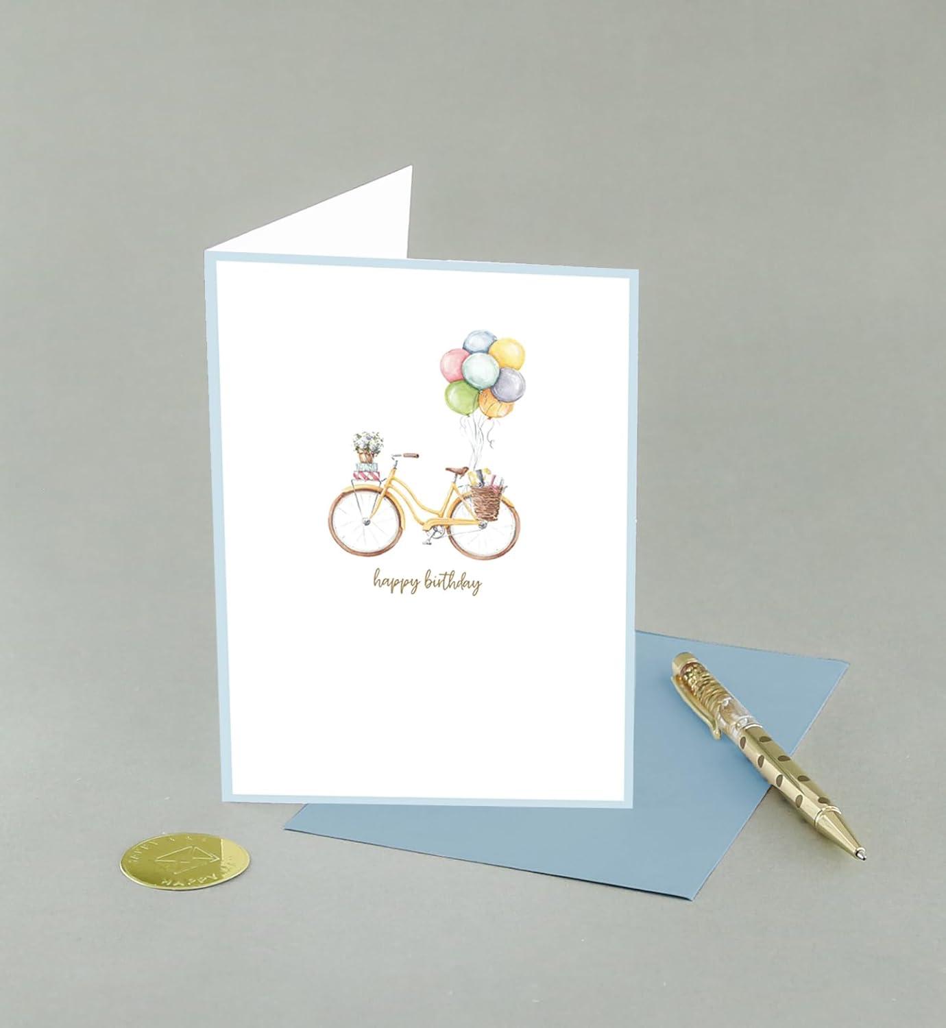 Graphique Bicycle with Balloons Birthday Card | Family and Friends | Embellished with Gold Foil Accents | Color-Coordinated Envelope | 5″ x 7″(Belated)