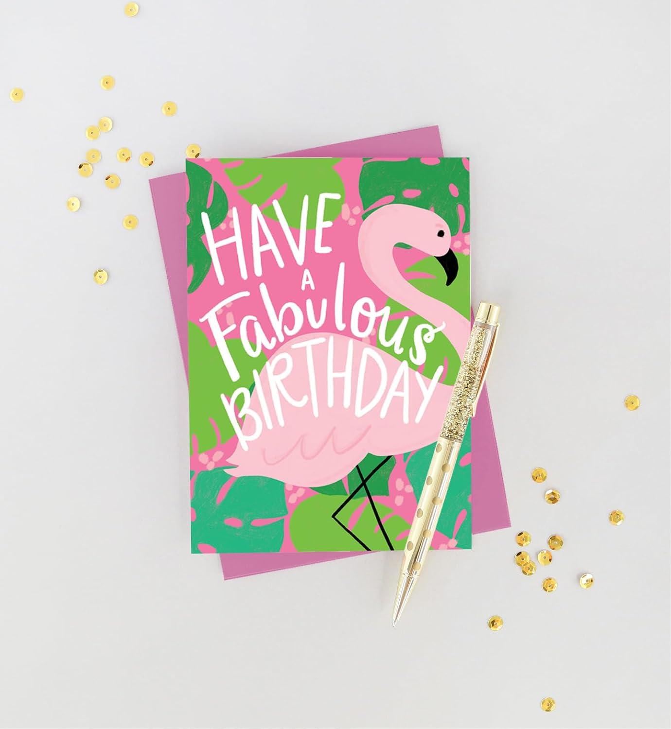 Graphique Bicycle with Balloons Birthday Card | Family and Friends | Embellished with Gold Foil Accents | Color-Coordinated Envelope | 5″ x 7″(Flamingo)