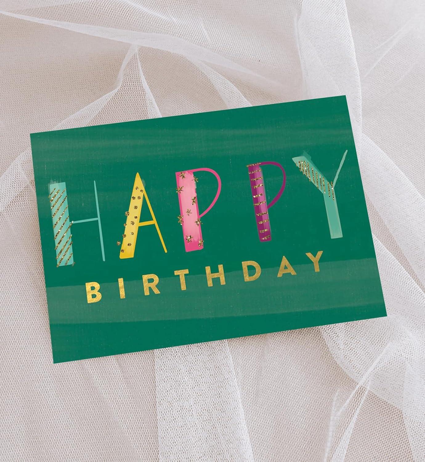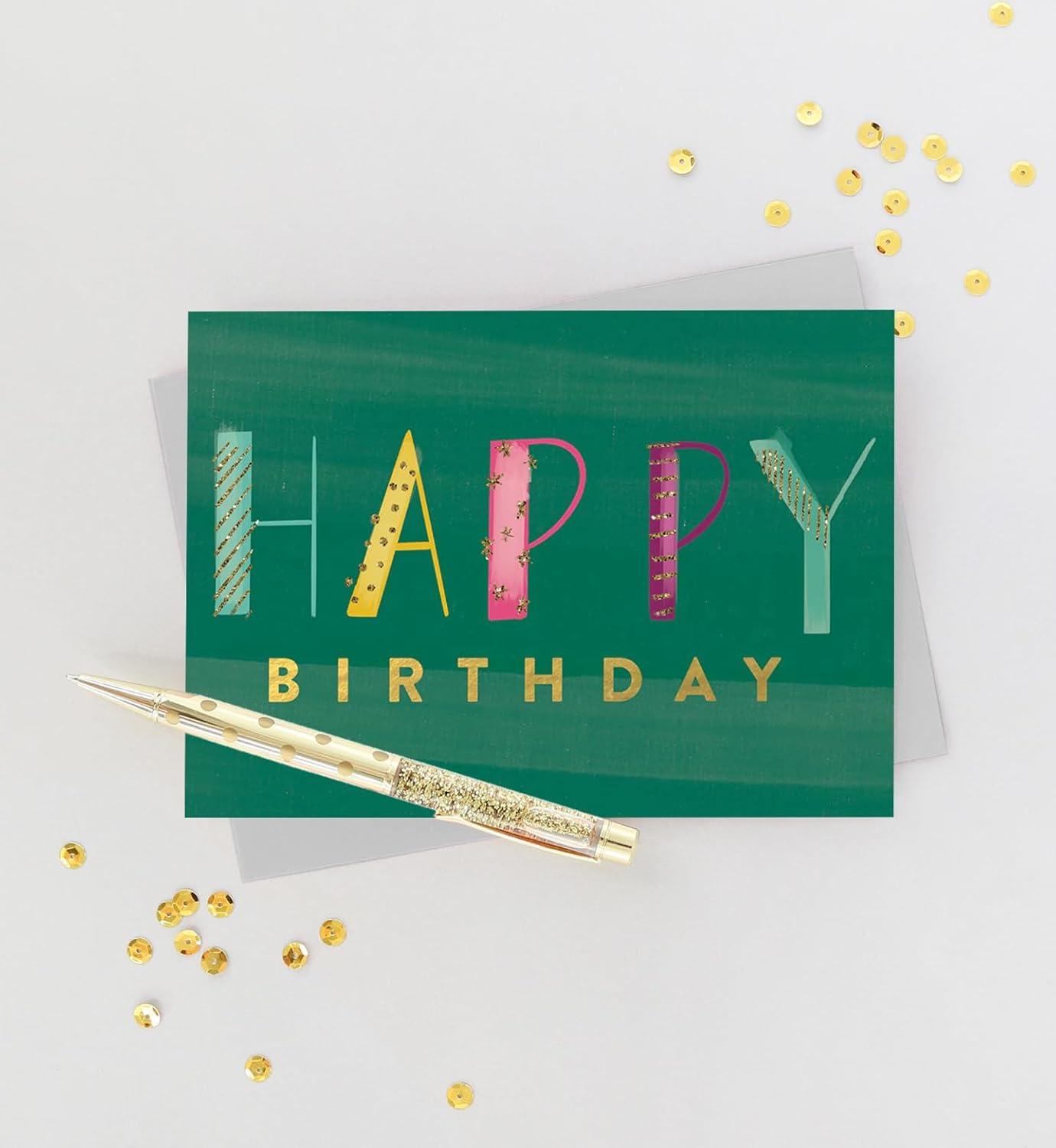 Graphique Bicycle with Balloons Birthday Card | Family and Friends | Embellished with Gold Foil Accents | Color-Coordinated Envelope | 5″ x 7″(Green Watercolor)