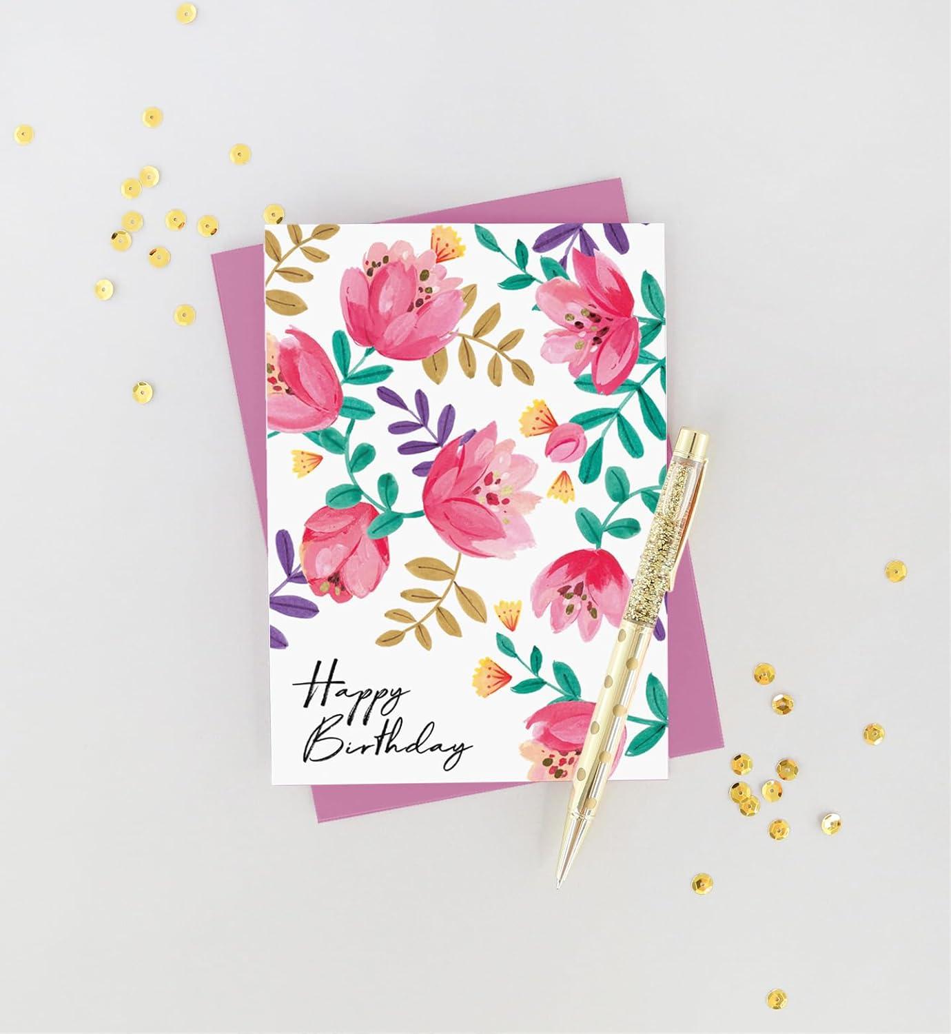 Graphique Bicycle with Balloons Birthday Card | Family and Friends | Embellished with Gold Foil Accents | Color-Coordinated Envelope | 5″ x 7″(Spring Floral)