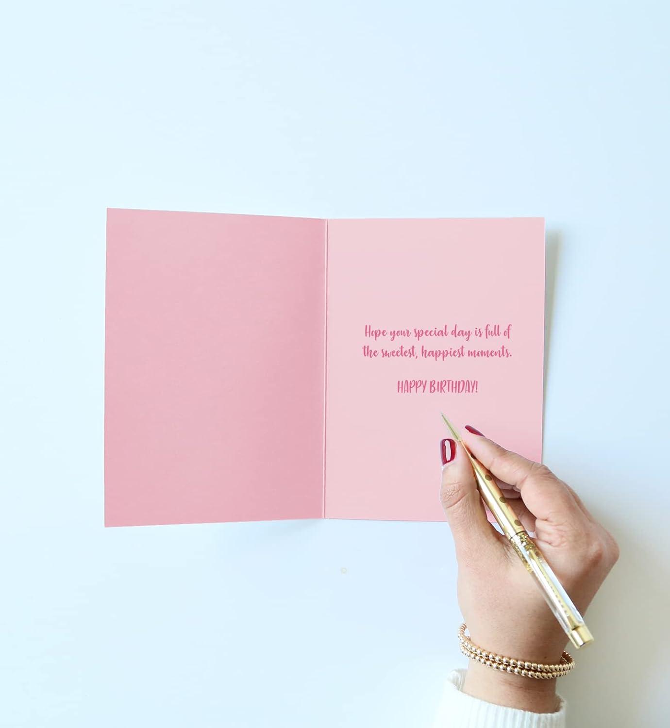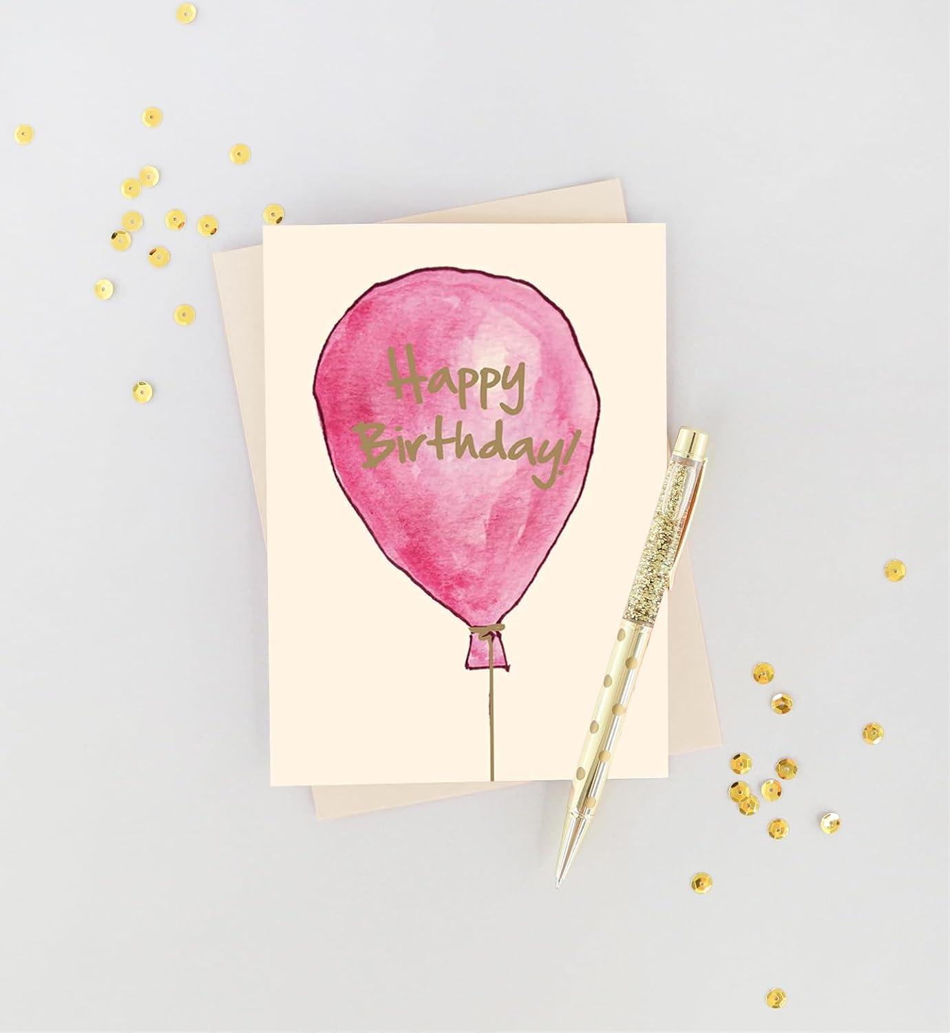 Graphique Bicycle with Balloons Birthday Card | Family and Friends | Embellished with Gold Foil Accents | Color-Coordinated Envelope | 5″ x 7″(Flamingo)