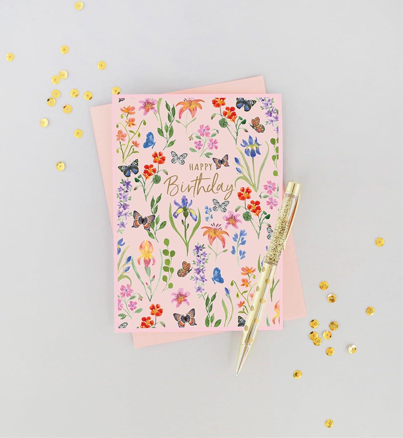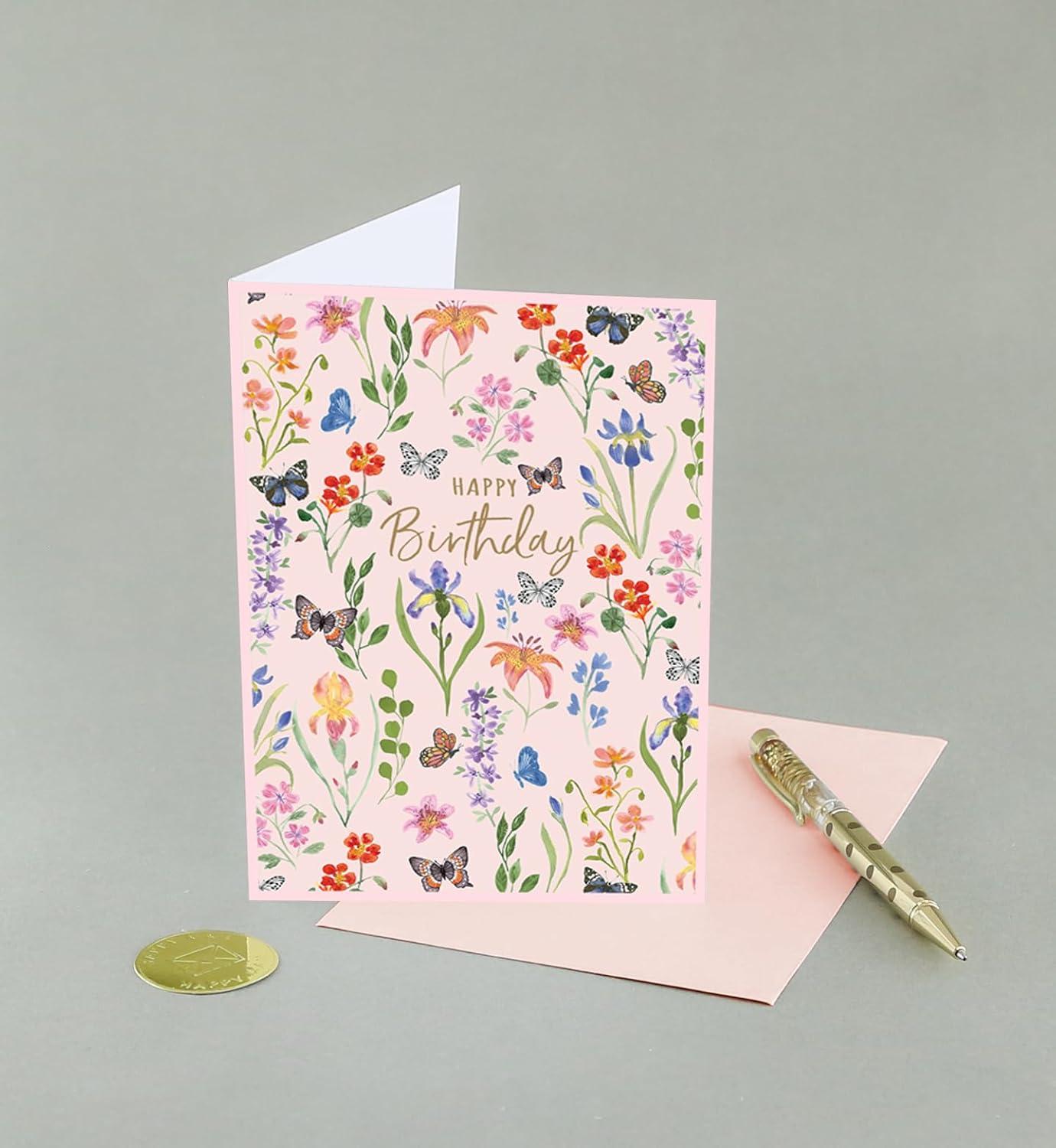 Graphique Butterflies Birthday Card, Family and Friends, Color-Coordinated Envelope, 5″ x 7″(Flowers)