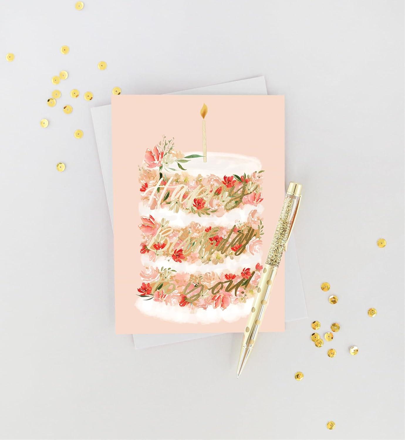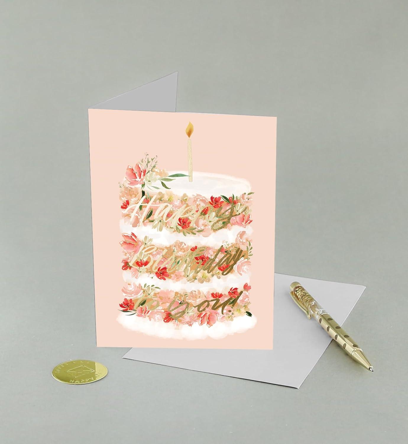Graphique Bicycle with Balloons Birthday Card | Family and Friends | Embellished with Gold Foil Accents | Color-Coordinated Envelope | 5″ x 7″(Floral Cake)