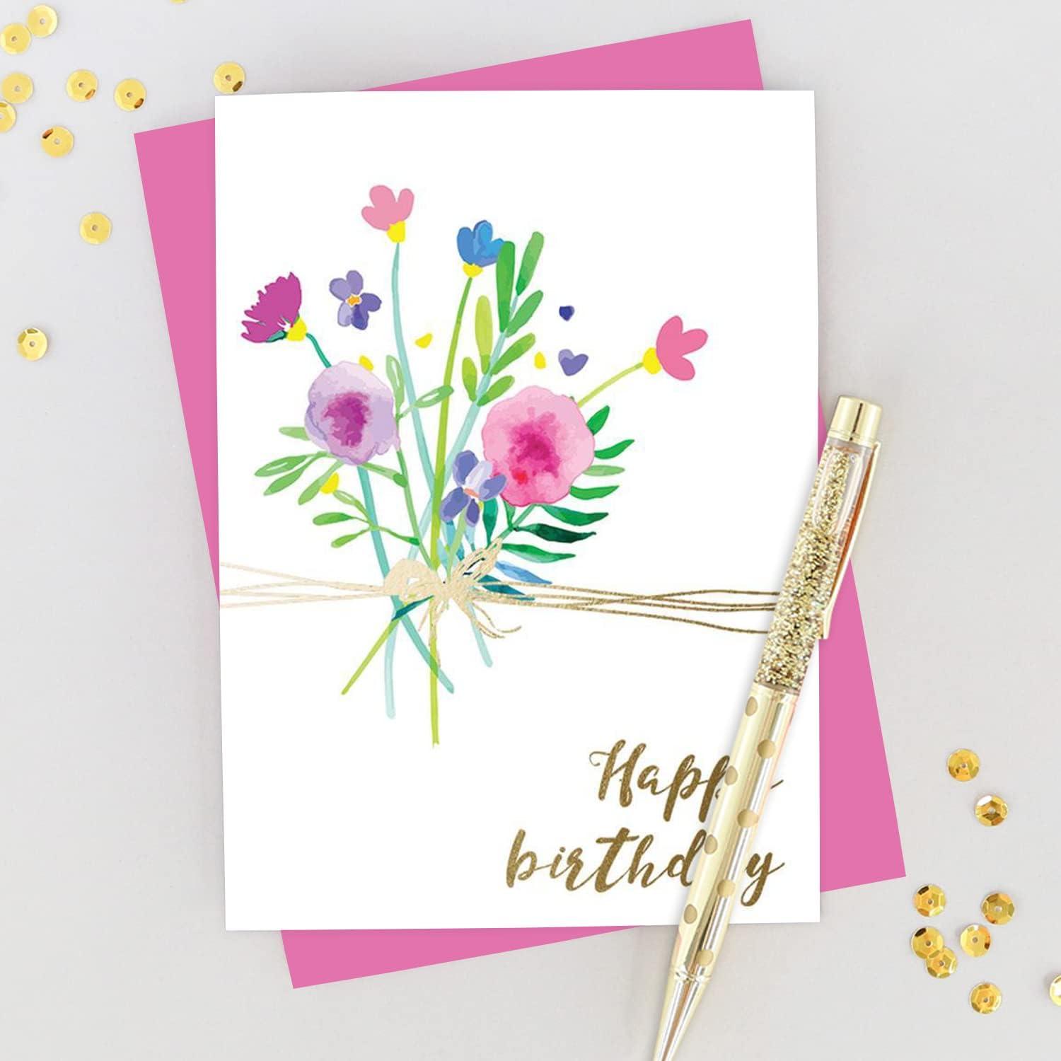 Graphique Birthday Assorted Cards | Pack of 20 Blank Cards with Envelopes | Family and Friends | 4 Assorted Designs with Holographic Foil Accents | Boxed Set for Personalized Notes | 4.25″ x 6″(Watercolor Floral)