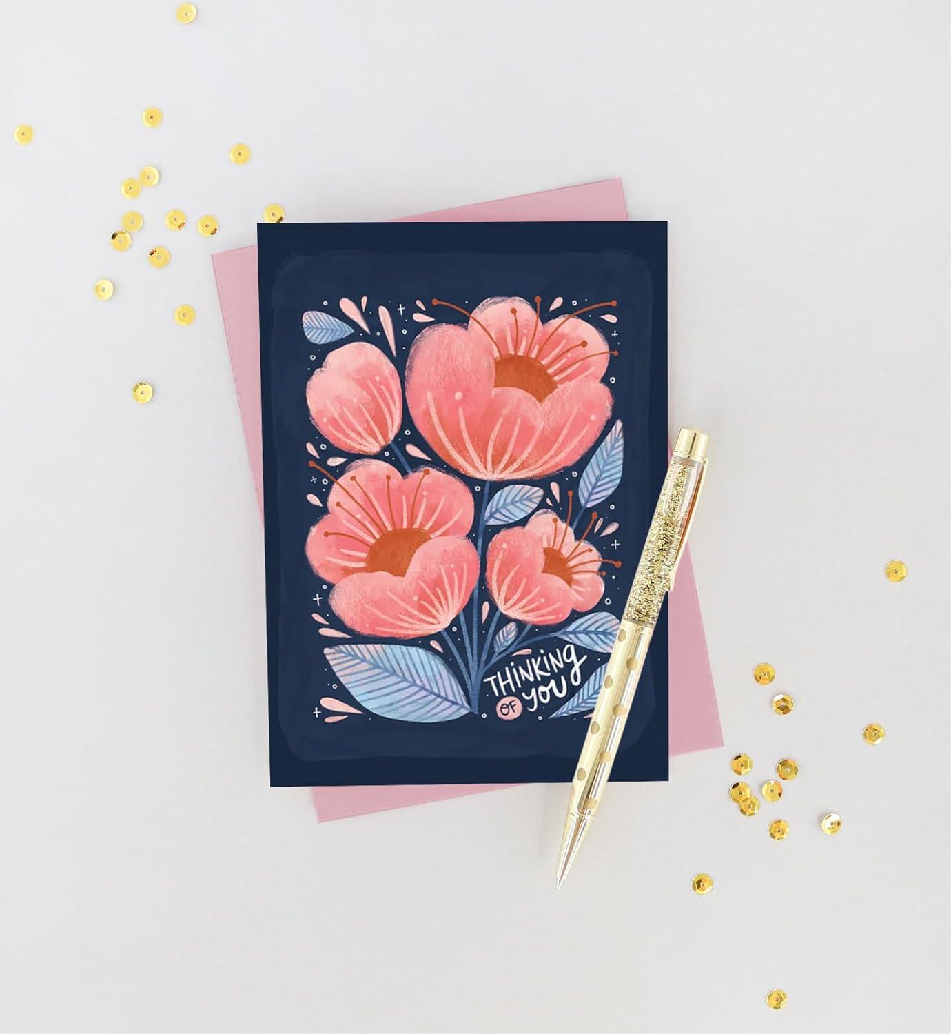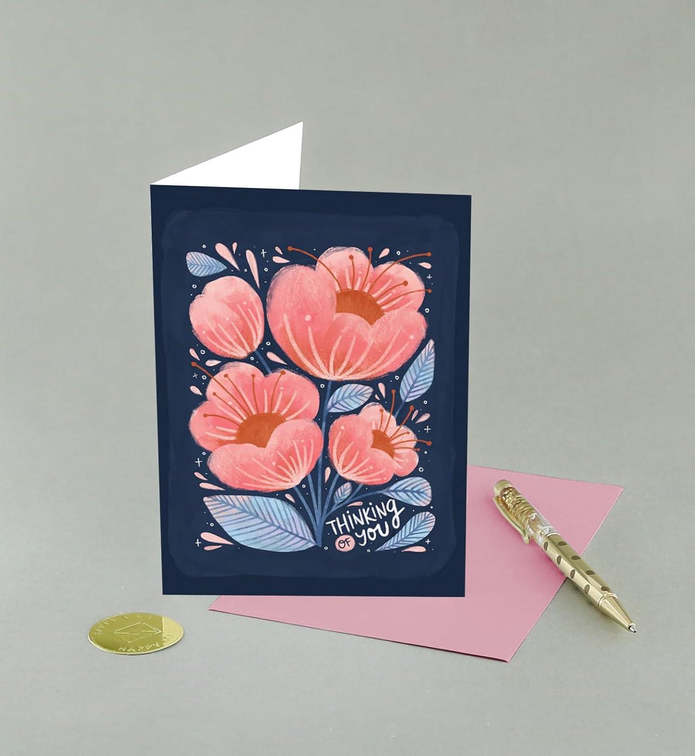 Graphique Balloon Get Well Card, Feel Better Soon, Recovery, Family and Friends, Color-Coordinated Envelope, 5″ x 7″(Thinking Floral)