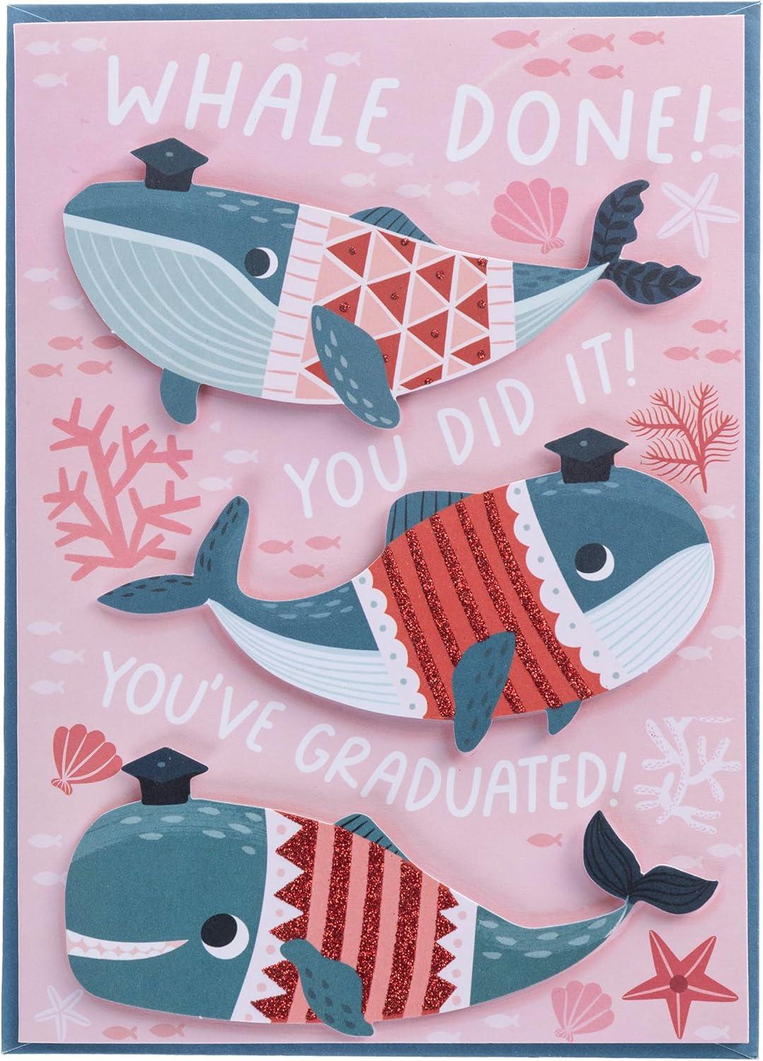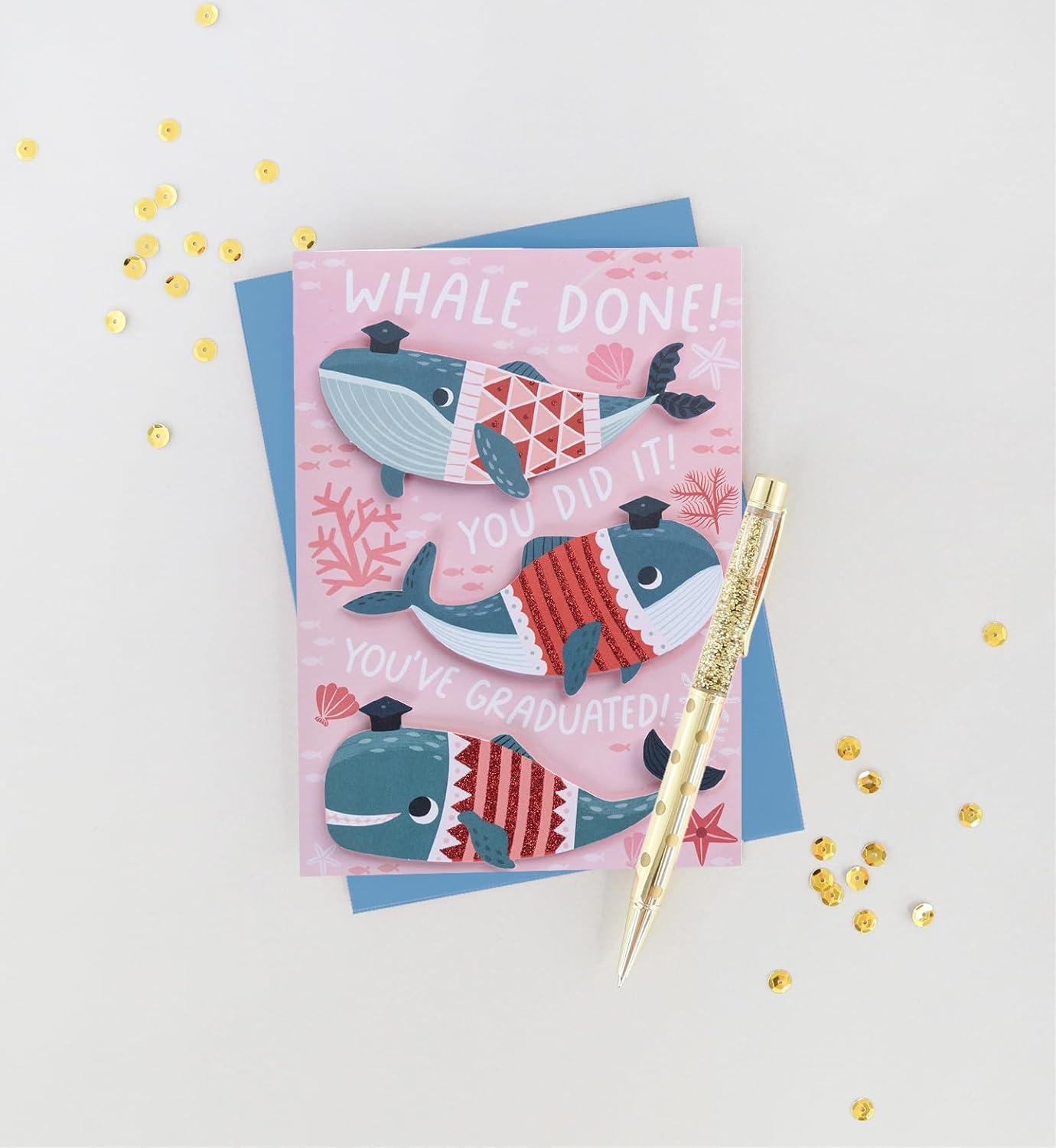 Graphique 2025 Grad Handmade Card, Graduation Congratulations, Color-Coordinated Envelope, 5” x 7”(Whale Done Grad)