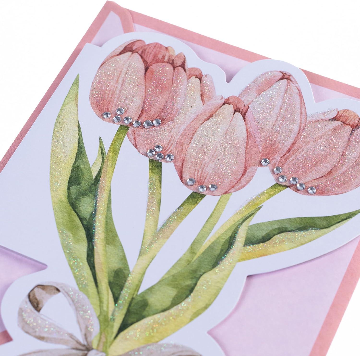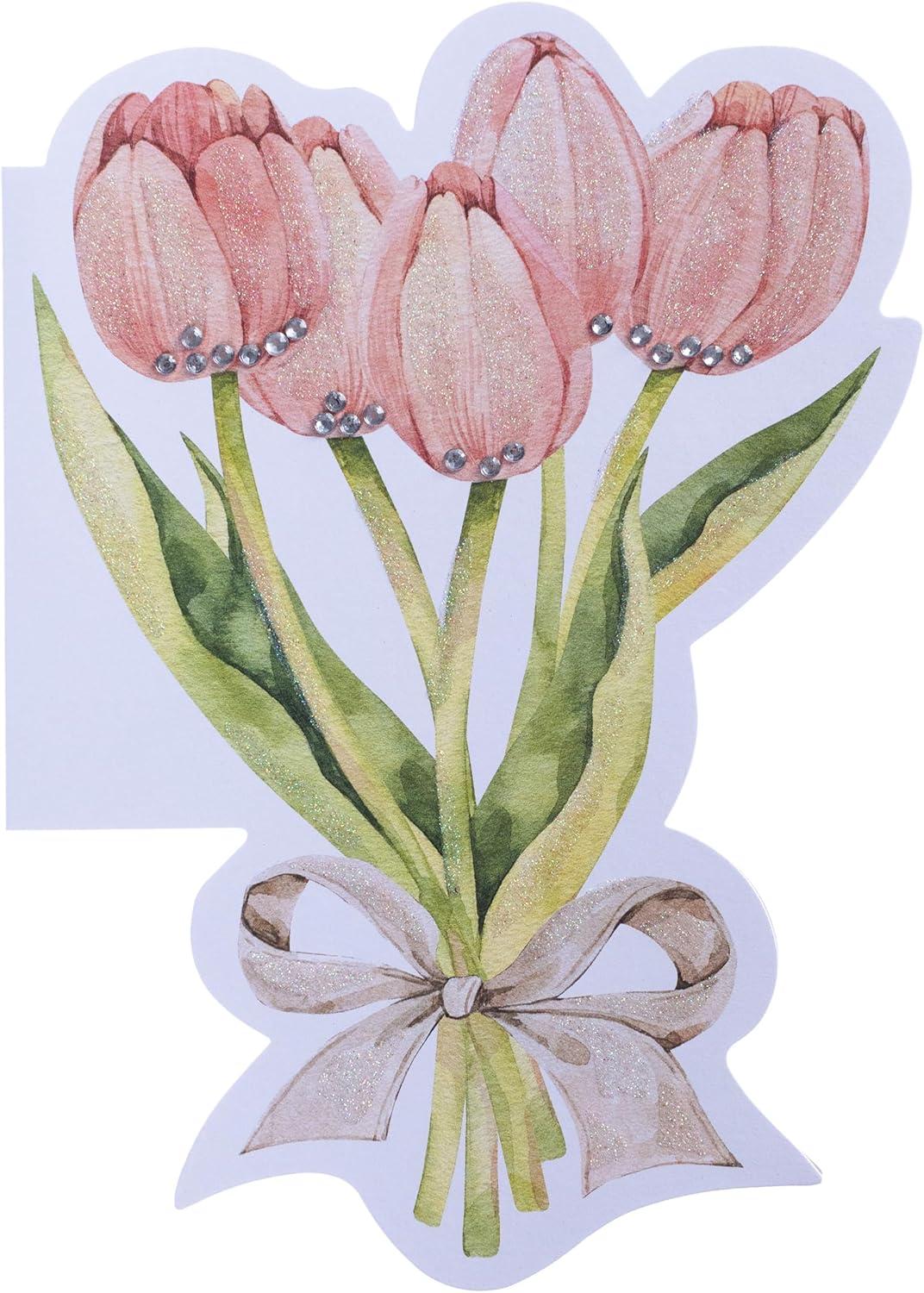 Graphique Easter Basket Handmade Card, Holiday Greeting, Color-Coordinated Envelope, 5” x 7”(Easter Tulips)