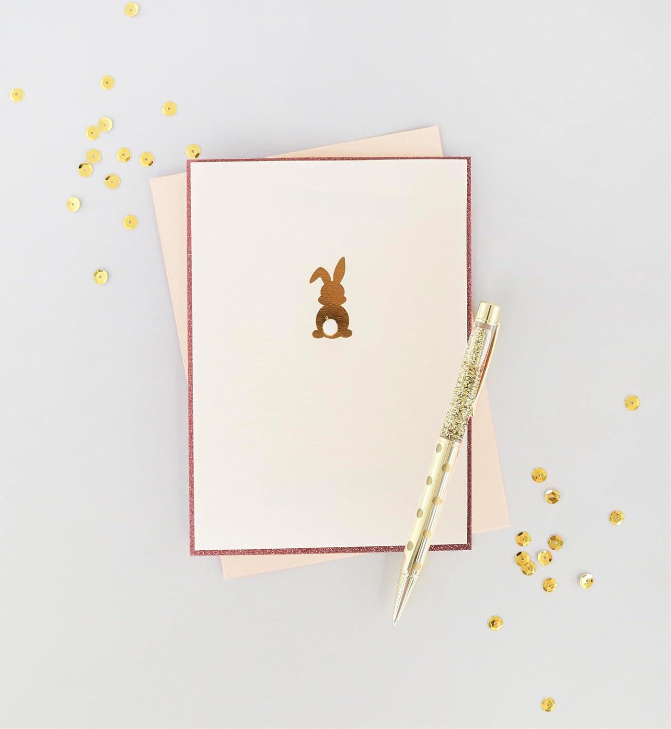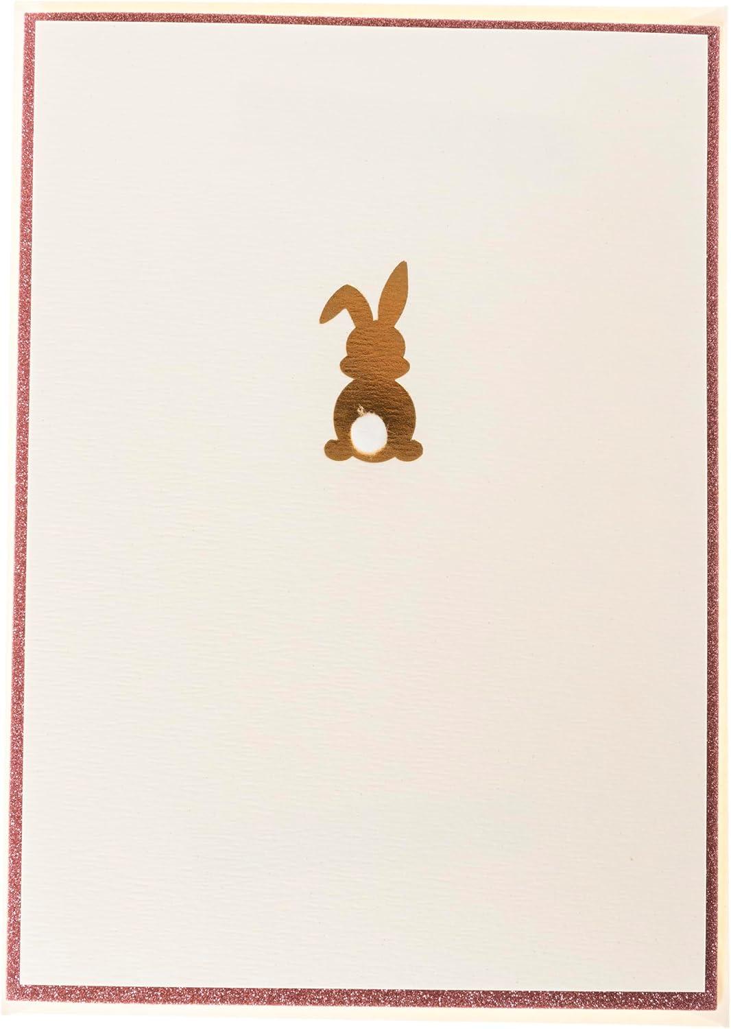 Graphique Easter Basket Handmade Card, Holiday Greeting, Color-Coordinated Envelope, 5” x 7”(Gold Petite Easter Bunny)