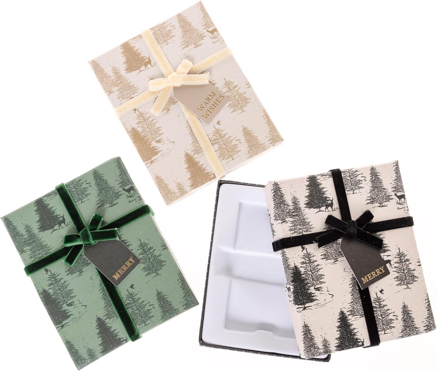 Graphique Forest Trees Christmas Gift Card Holders, Set of 3 Boxes, Decorative Velvet Ribbons(Peanuts)