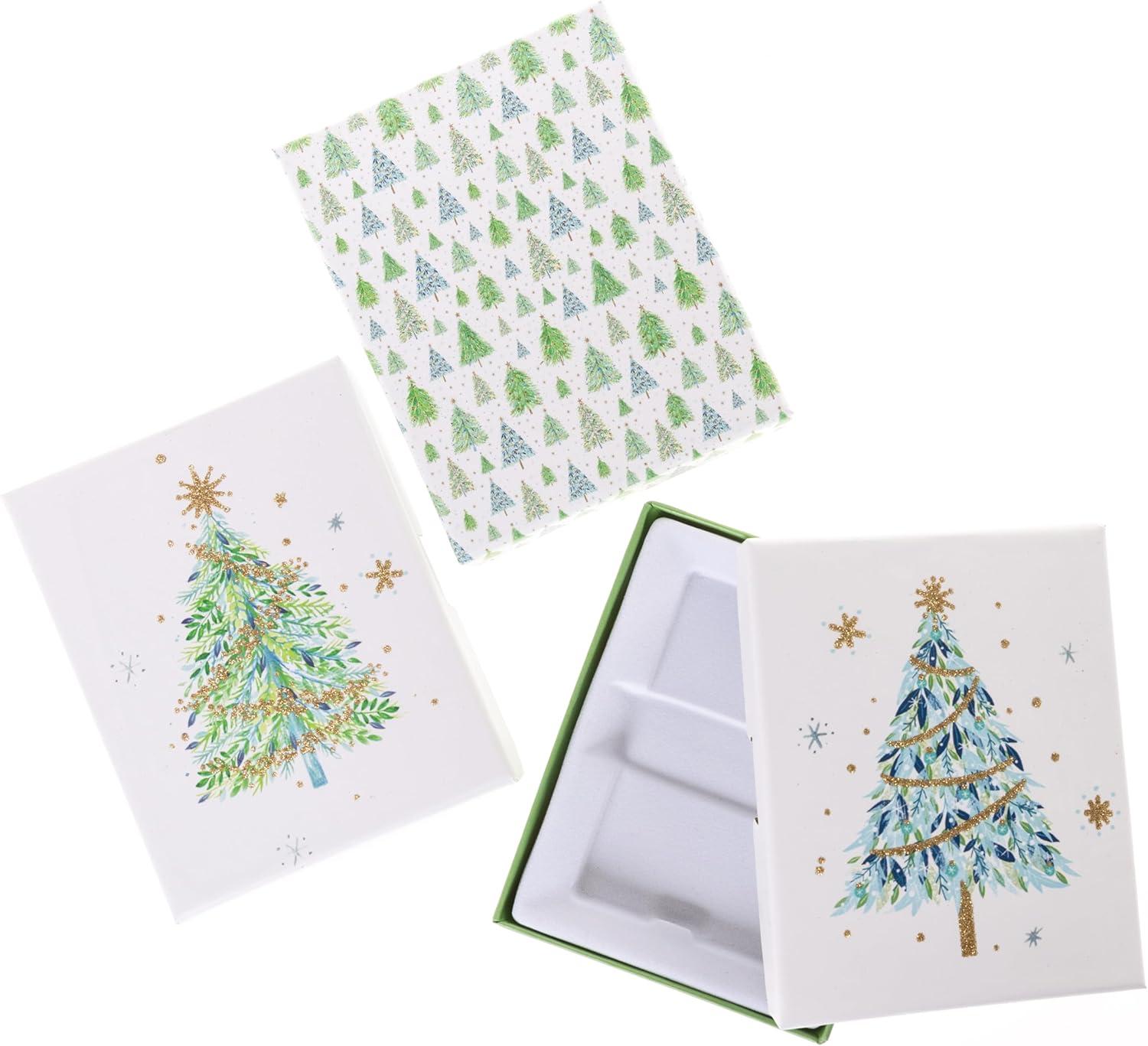 Graphique Forest Trees Christmas Gift Card Holders, Set of 3 Boxes, Decorative Velvet Ribbons(Sparkly Tree)
