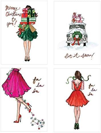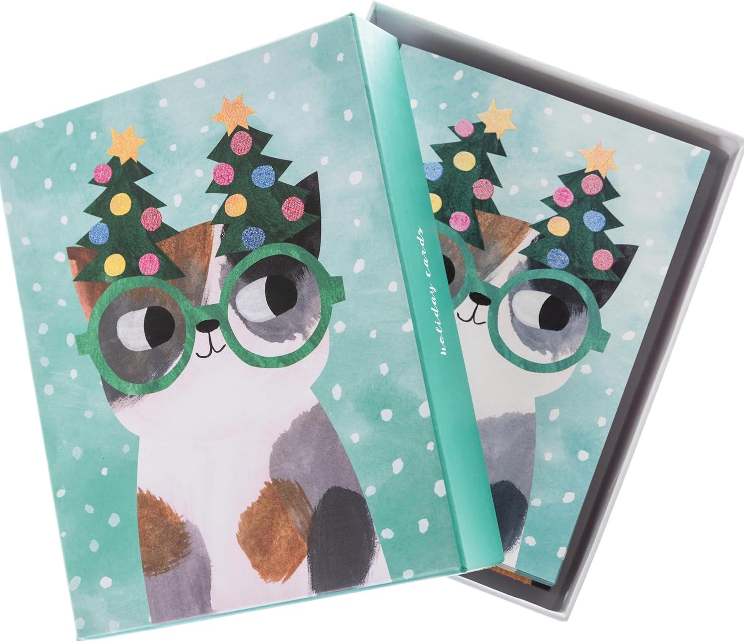 Graphique Funny Cats Christmas Cards, Pack of 20 Holiday Cards with Envelopes, 4 Assorted Designs Boxed Set, 4.25″ x 5.875″(Chic Xmas)