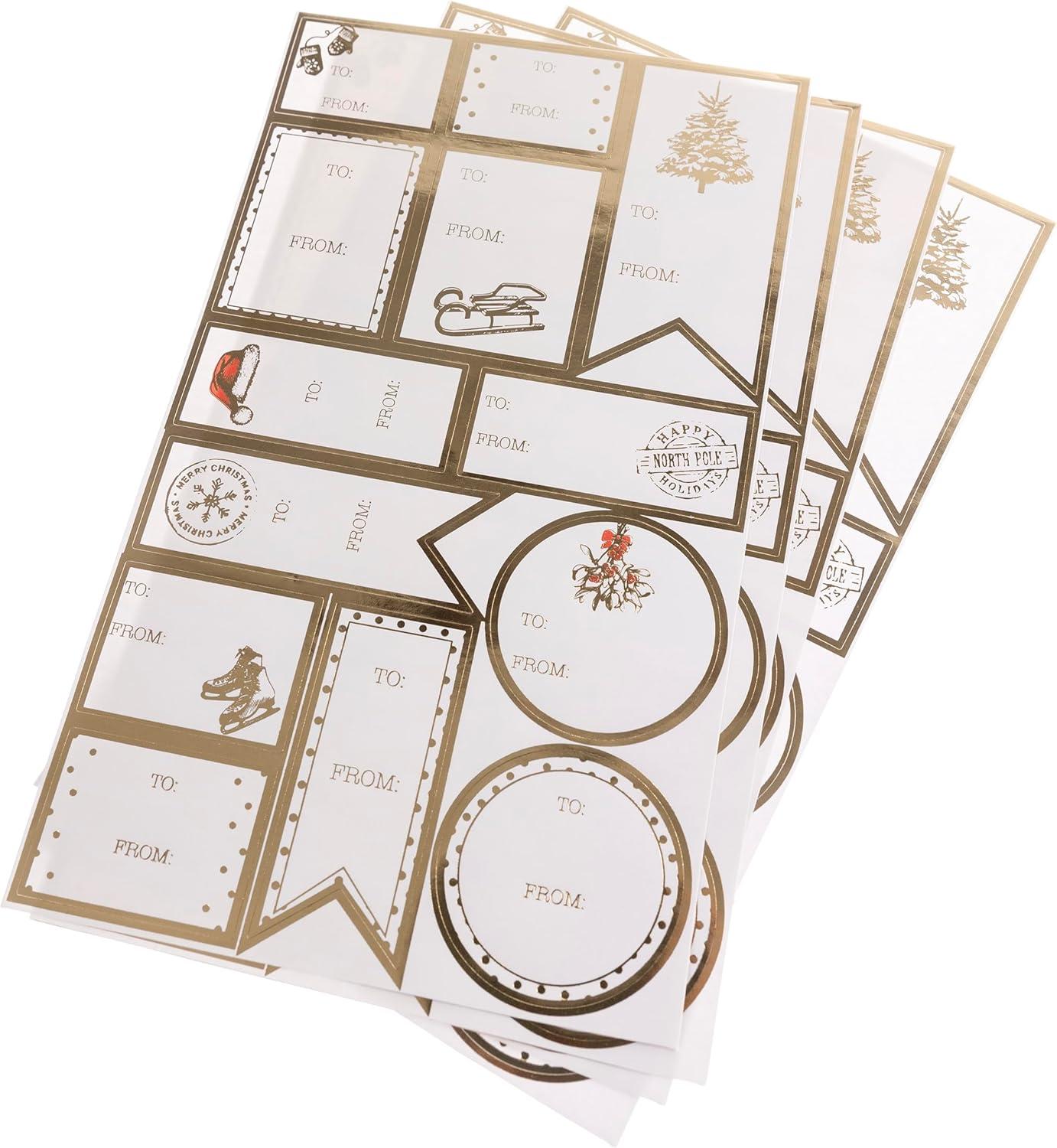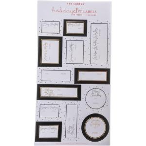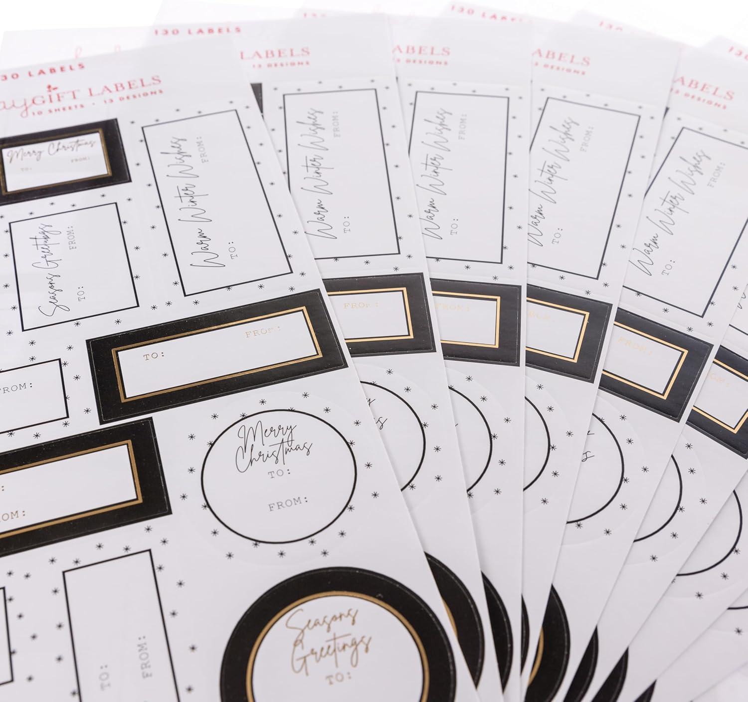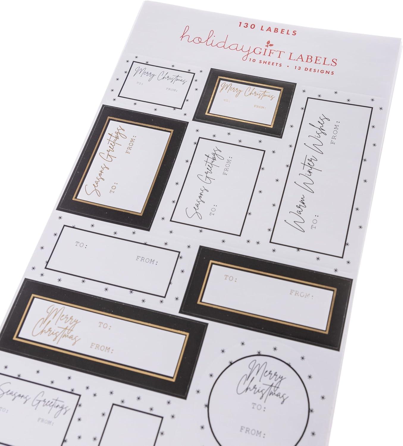 Graphique Holiday Gift Labels, 130 Self-Adhesive Christmas Stickers, 13 Designs with Gold Foil Accents(B&W Christmas)