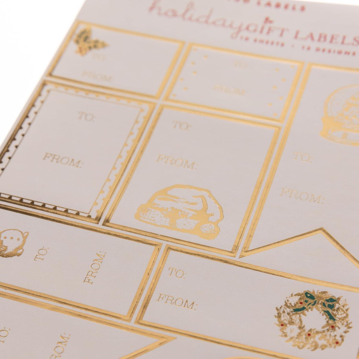 Graphique Holiday Gift Labels, 130 Self-Adhesive Christmas Stickers, 13 Designs with Gold Foil Accents(Gold Foil)