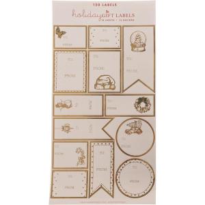 Graphique Holiday Gift Labels, 130 Self-Adhesive Christmas Stickers, 13 Designs with Gold Foil Accents(Shimmering White)
