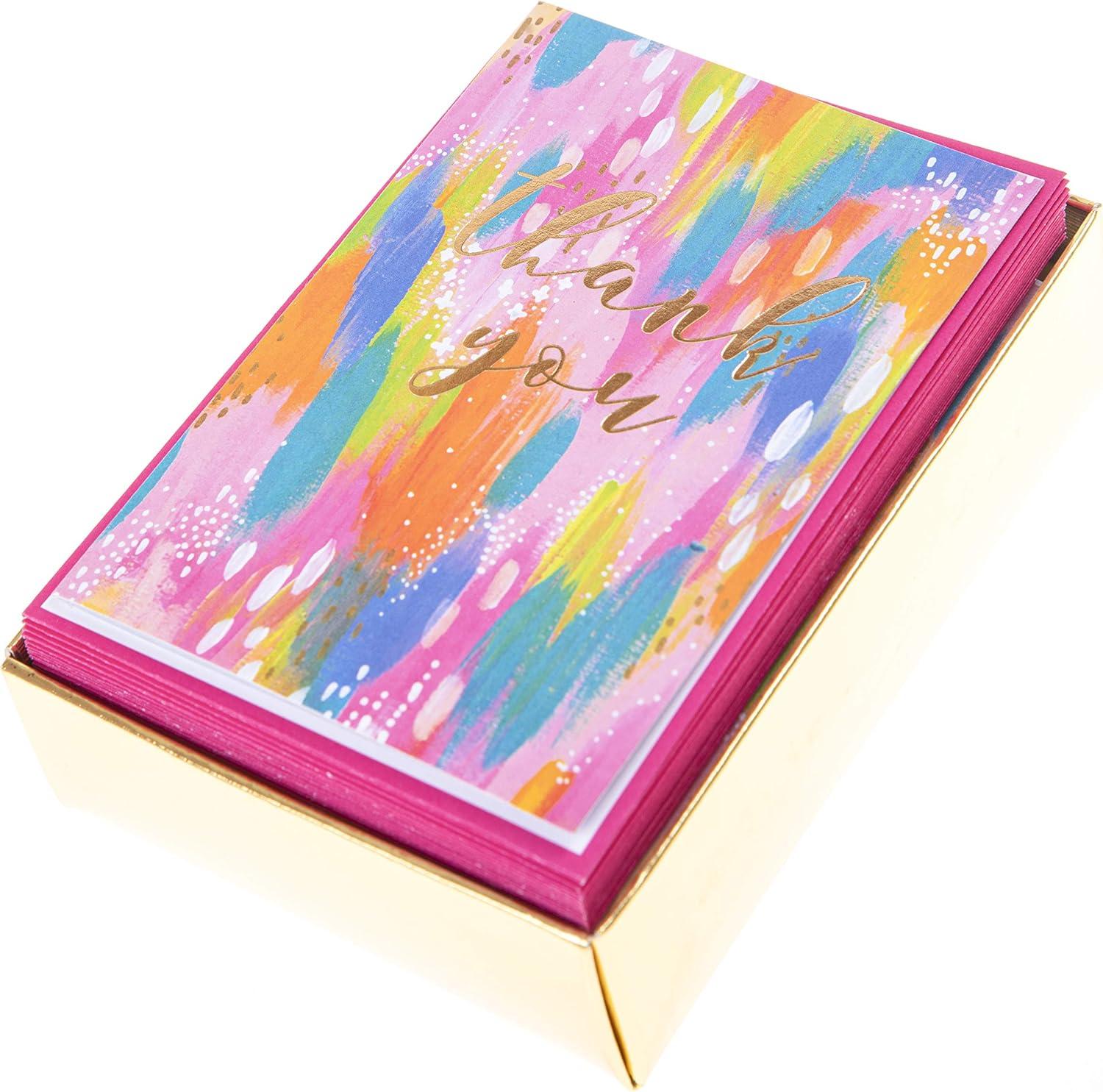 Graphique Box of Thank You Cards, Brush Strokes – Includes 16 Cards with Matching Envelopes and Storage Box, Cute Stationery Made of Durable Heavy Cardstock, Cards Measure 3.25″ x 4.75″(Brush Strokes)