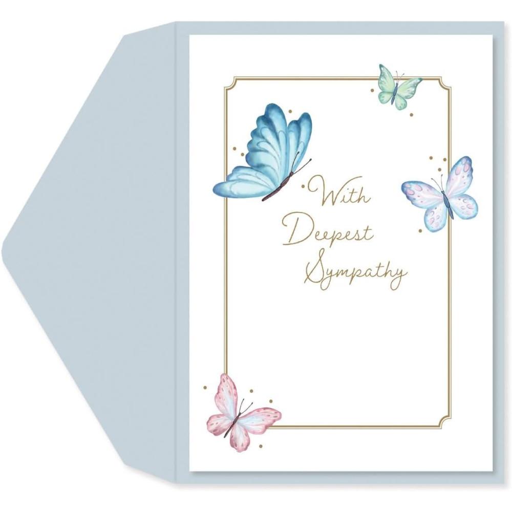 Graphique Cherry Blossom Sunset Sympathy Card, Condolence and Bereavement, Thinking of You, Grief and Loss, Family and Friends, Color-Coordinated Envelope, 5″ x 7″(Butterflies)