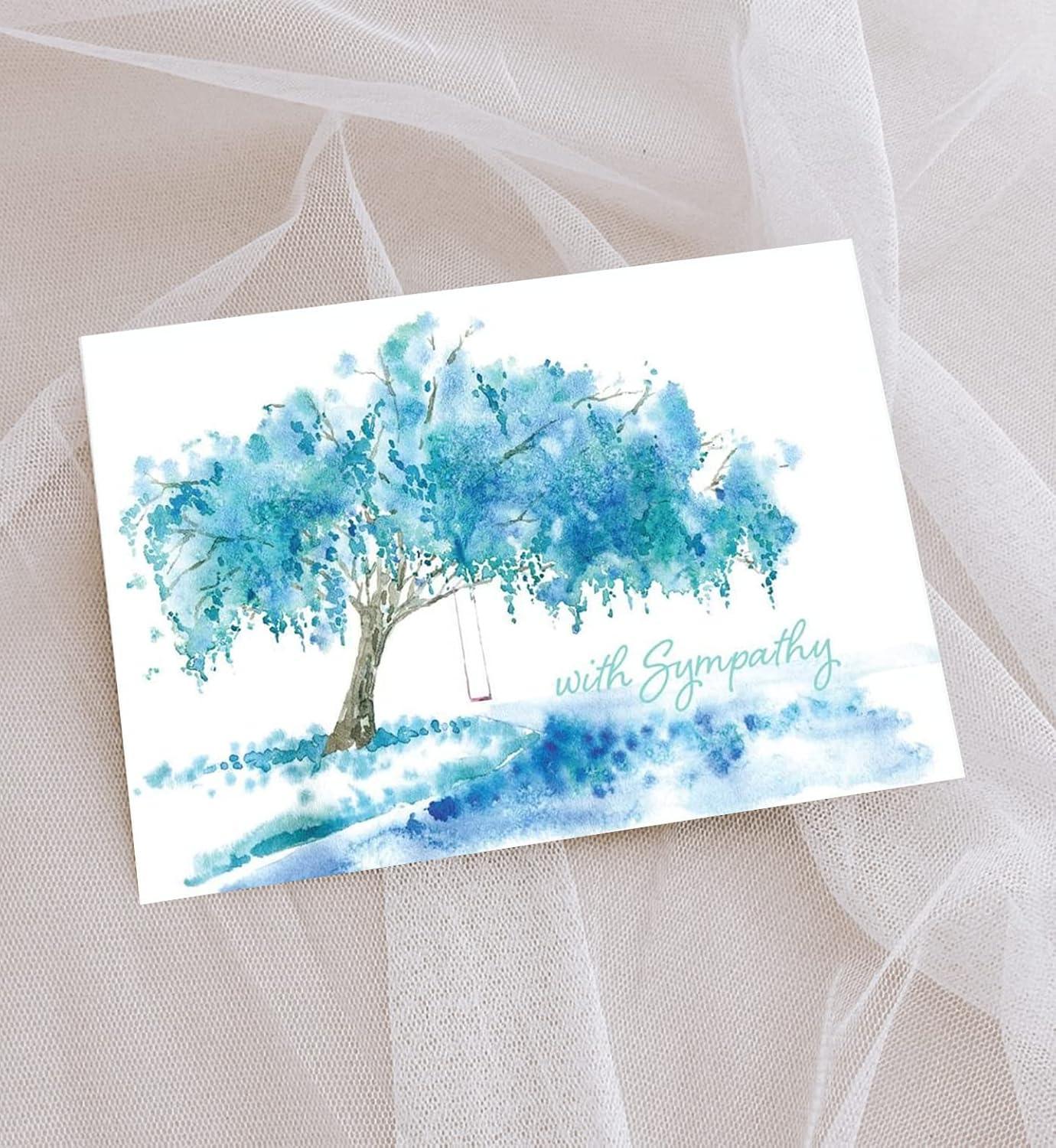 Graphique Cherry Blossom Sunset Sympathy Card, Condolence and Bereavement, Thinking of You, Grief and Loss, Family and Friends, Color-Coordinated Envelope, 5″ x 7″(Watercolor Willow)