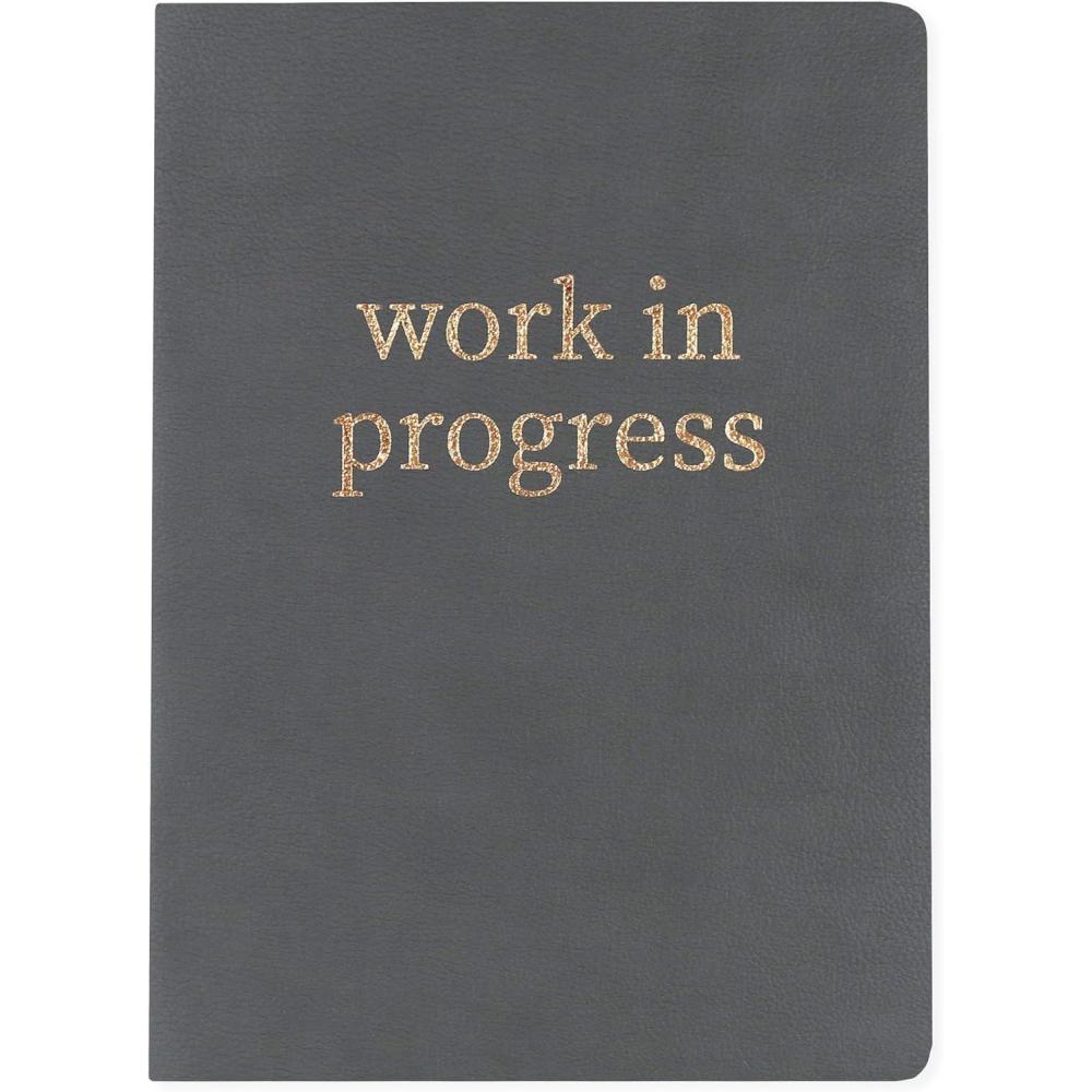 Graphique Large Vegan Leather Journal, Progress – 7” x 9.5″, 192 Lined Pages, The Quote “Work In Progress” Embellished in Gold Foil on the Cover – Perfect for Taking Notes, Lists and More