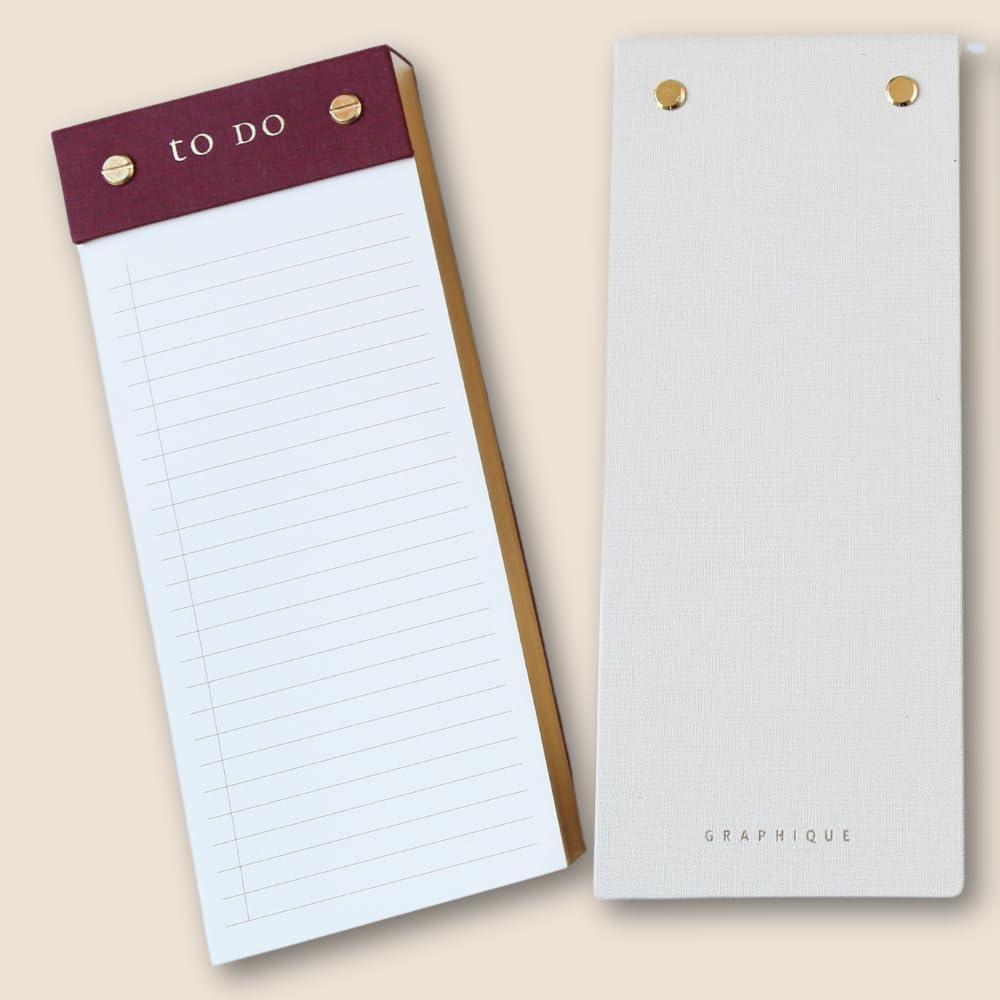 Graphique Post-Bound List Pad Luxe Collection, Perforated Sheets To-Do Notepad, Hardcover Binding, Gold Foil Embossing, 100 Pages, 4” x 9.75”, Plum Red