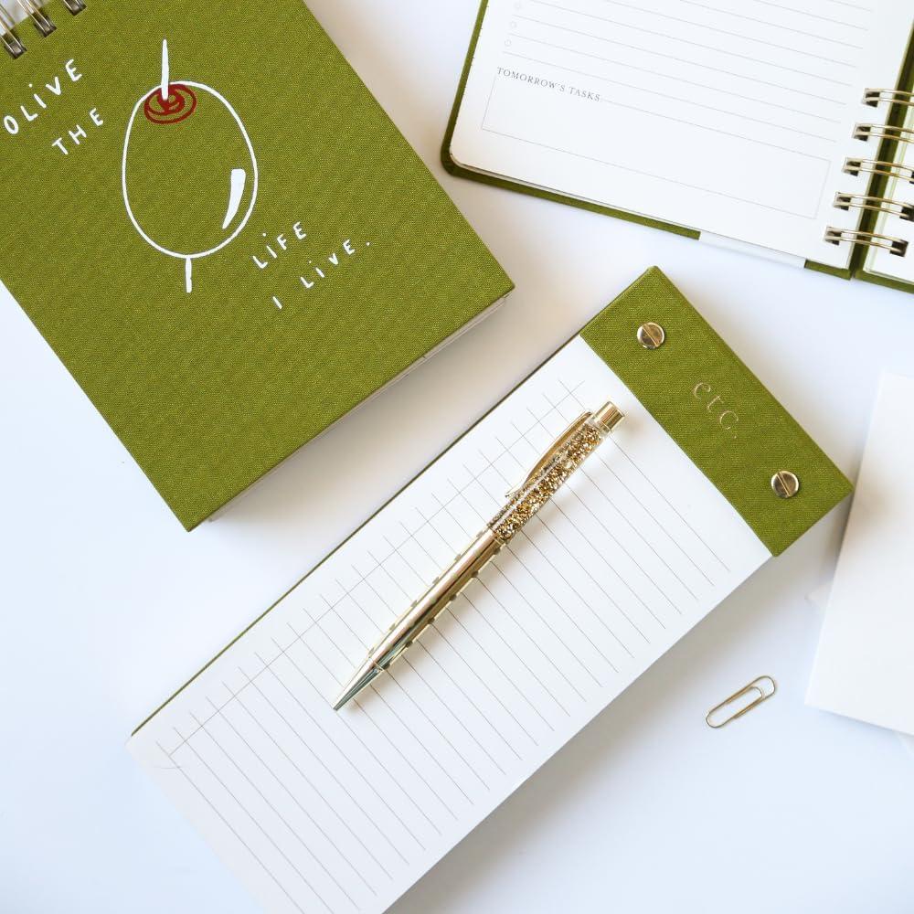TO-DO LIST REDEFINED: Featuring a premium linen fabric-wrapped hardcover with gold foil embossing and gilded page edges, this post-bound list pad elevates your workspace with refined elegance
