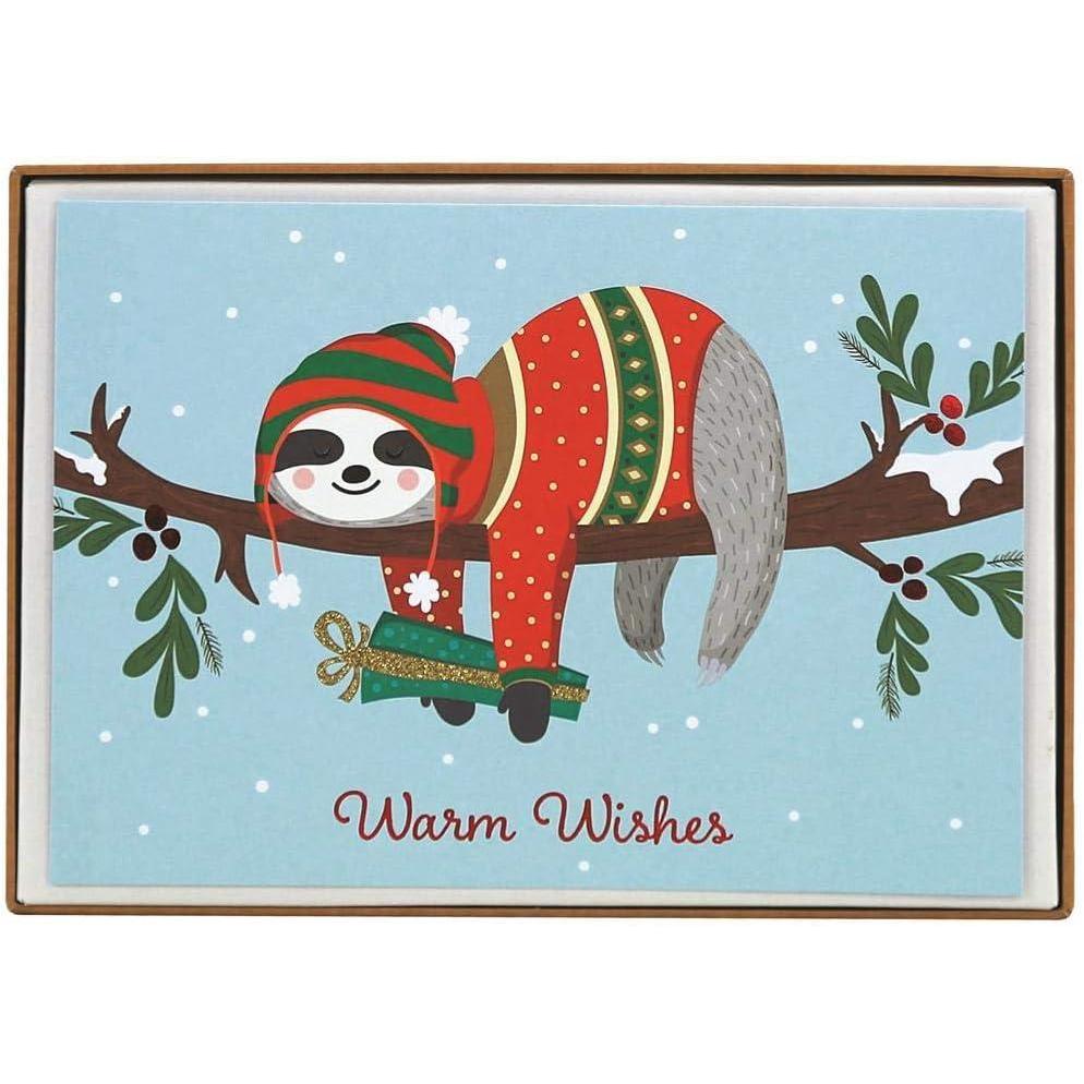 Graphique Santa Christmas Cards, Boxed Set of 15 Holiday Cards with Envelopes, 4.75″x 6.625″(Sloth)