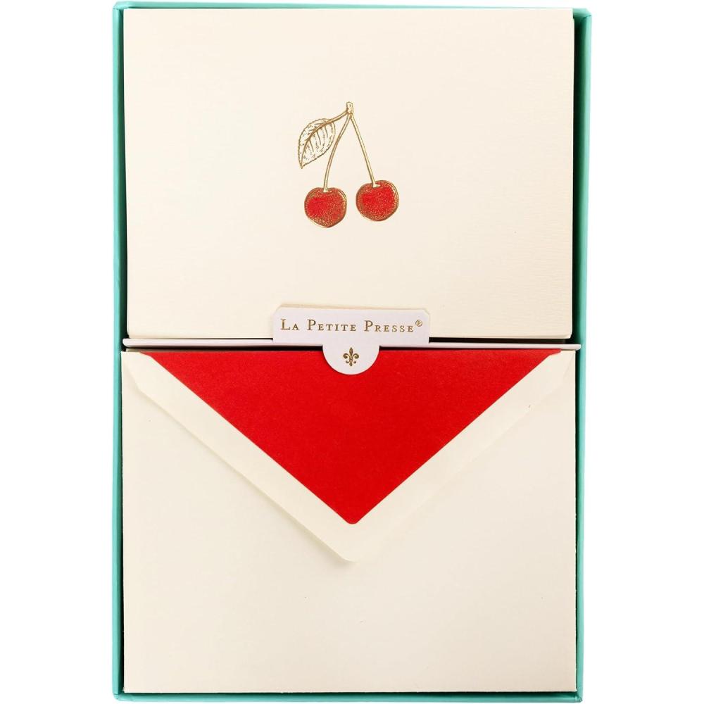Graphique Sun Designer Cards Luxe Collection, Gold Foil Embossed Stationary Boxed Set, 10 Blank Cards with 11 Envelopes, All Occasion Greetings, 5.25″ x 3.8″(Cherries)