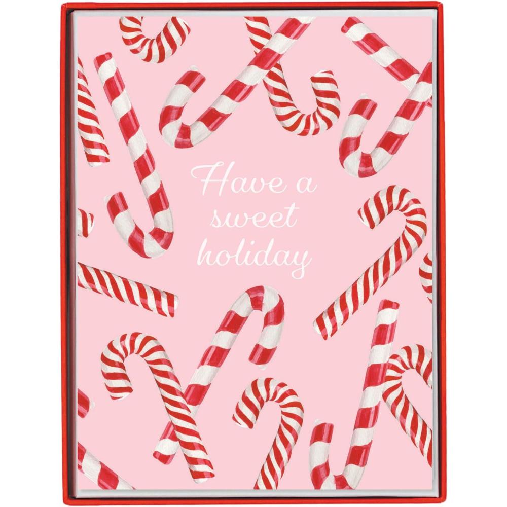 Graphique Wood Background Holiday Cards | Pack of 15 Cards with Envelopes | Christmas Greetings | Silver Foil Accents | Boxed Set | 4.25″ x 5.5″(Candy Canes)