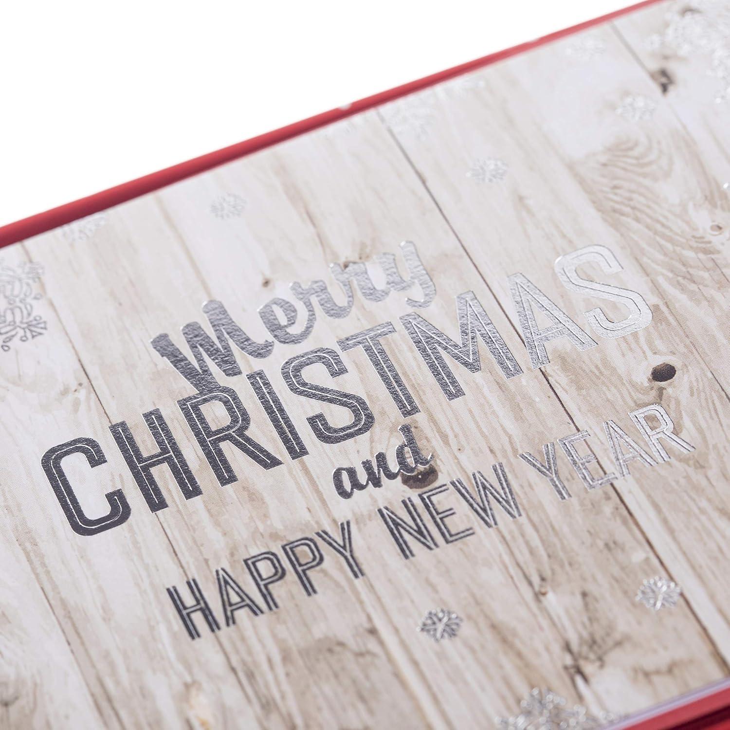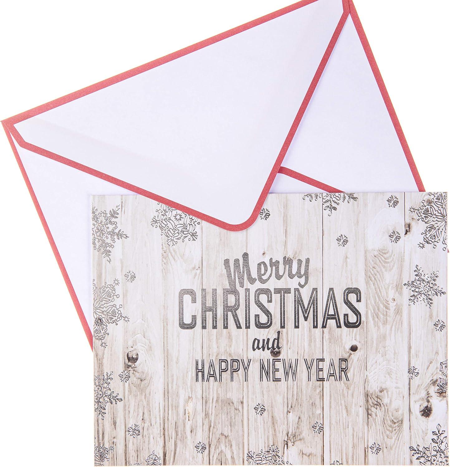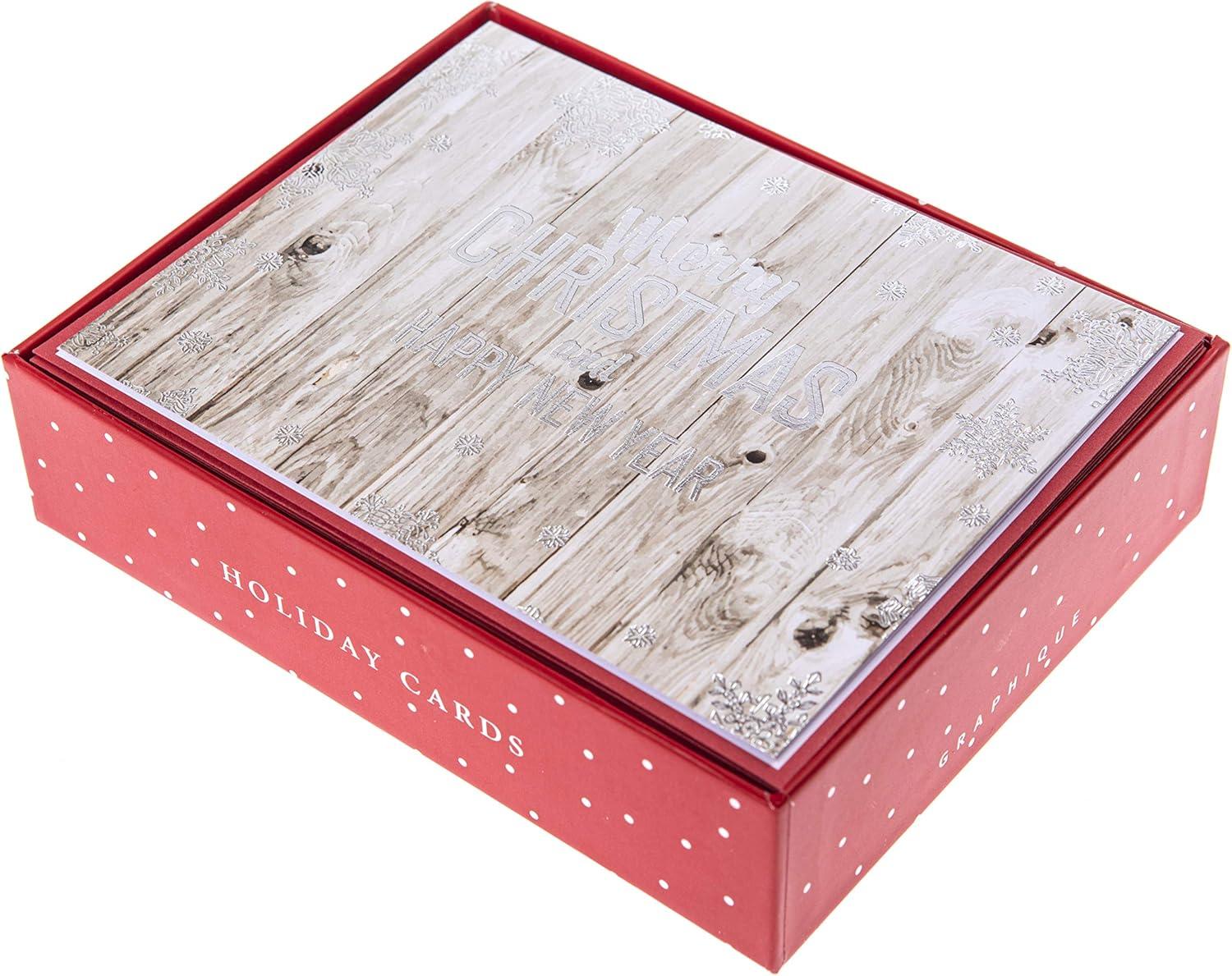 Graphique Wood Background Holiday Cards | Pack of 15 Cards with Envelopes | Christmas Greetings | Silver Foil Accents | Boxed Set | 4.25″ x 5.5″(Wood Backgroud)